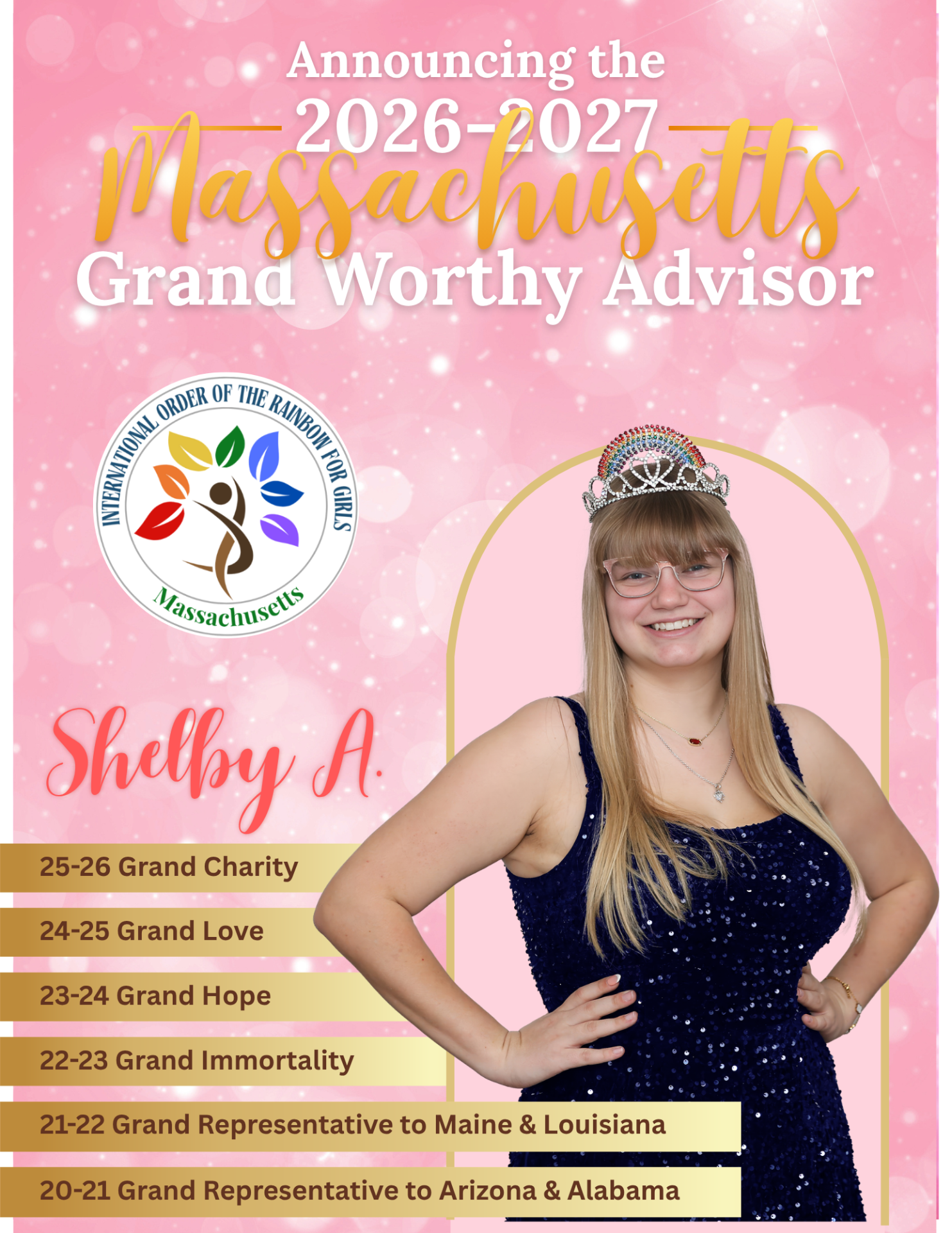 We are excited to officially announce that Miss Shelby A. of Sandra J. Marshall Assembly #47 has been selected as our 2026–2027 Grand Worthy Advisor!